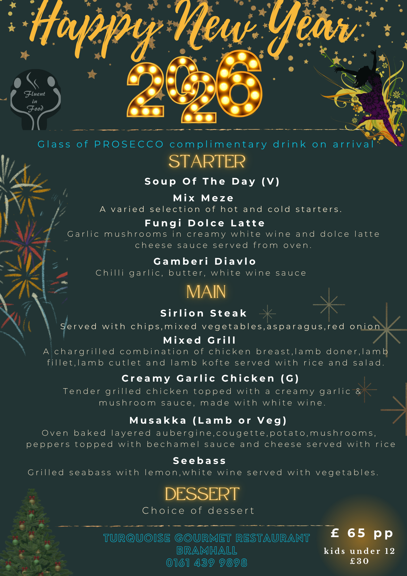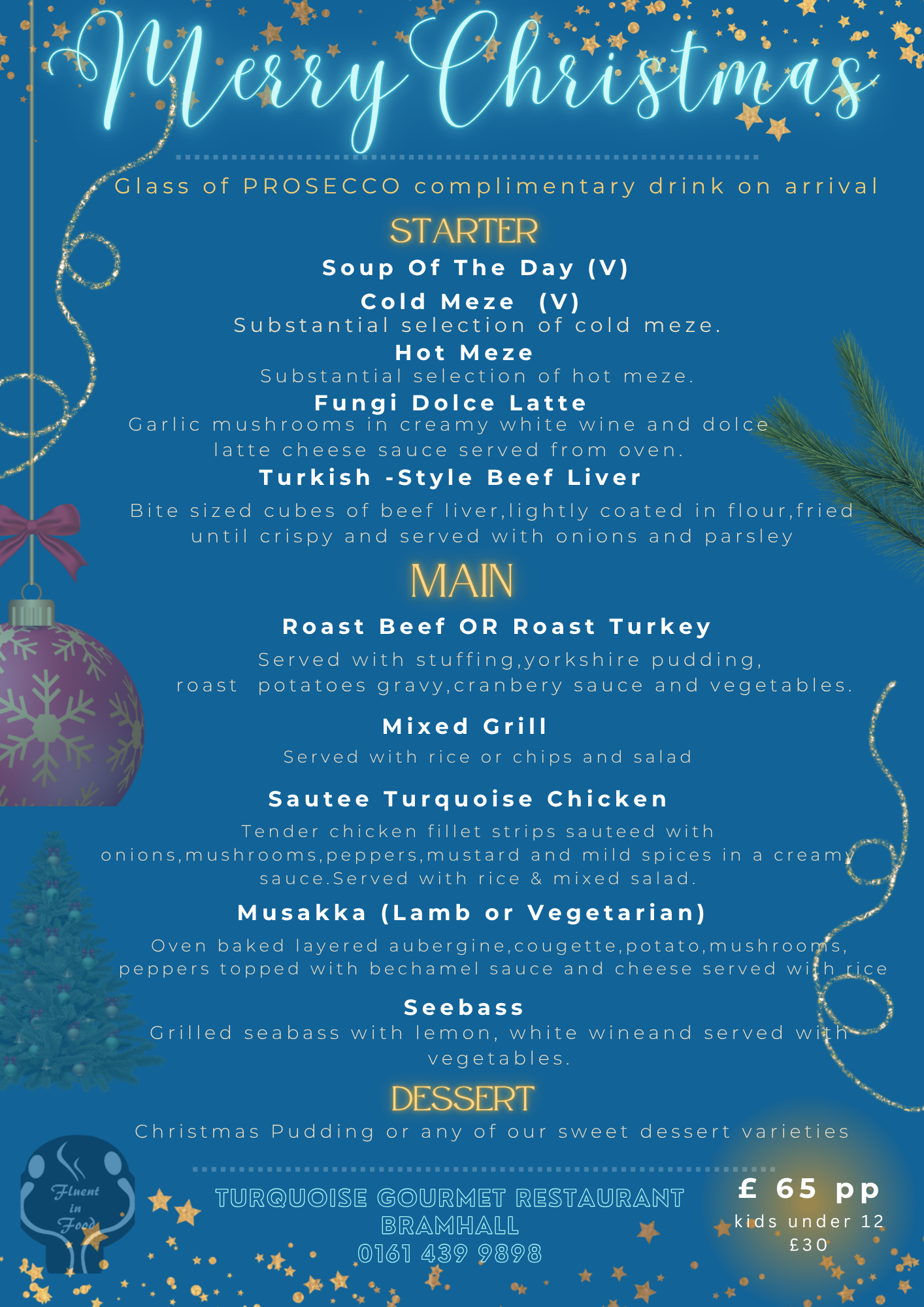 Call Us For Takeaway Order0161 349 98 98orDELIVEROO – JUST EAT A LA CARTE& SET MENU Sweets Desserts Menus Discover More XMAS MENU NEW YEAR'S EVE MENU We only have two branches, one in Alderley Edge and the other in Bramhallturquoıse gourmet restaurant BRAMHALL1-2 Ack Lane East , SK7 1AW0161 439 9898 Get Directions turquoıse cafe restaurant ALDERLEY EDGE67 London Road Alderley Edge, SK9 7DY0161 925942 Get Directions